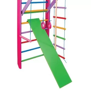 Детские спортивные уголки иготовлены из экологически чистого обработанного дерева и изготовлены специально с целью поддержания всестороннего физического развития деток в условиях обычных жилищных комнат. спортивные комплексы имеют многоцелевую базовую комплектацию, которая включают в себя: шведская стенка с верхним турником , рукоход, гладиаторская сетка, подвесной комплект, состоящий из гимнастической трапеции, веревки, веревочной лестницы и гимнастических колец, плюс навесной турник для малышей и доску для занятий с мышцами спины и прессом.