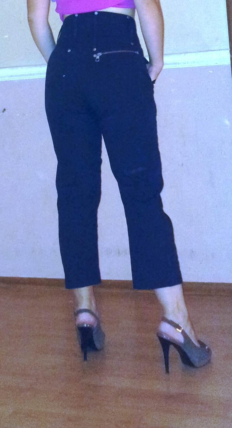 Обхват талии 70-75см, бедра от 90 до 95см, высота посадки по переду 31см по попе 40см, длина шагового шва 58см.