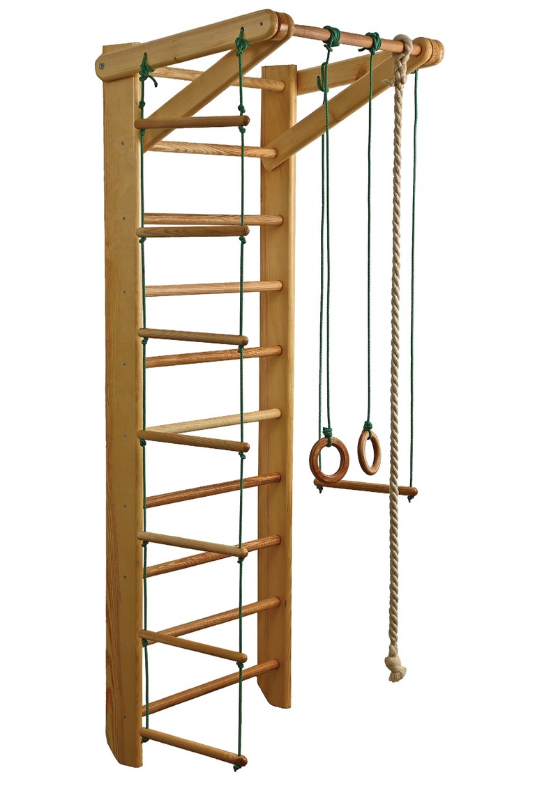 Детские спортивные уголки иготовлены из экологически чистого обработанного дерева и изготовлены специально с целью поддержания всестороннего физического развития деток в условиях обычных жилищных комнат.