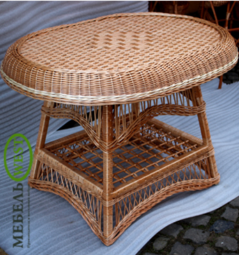 Изысканный стол из лозы "По кругу", с дополнительным плетеным декором.