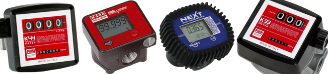 Электронные счетчики литров с овальными шестернями из ацетальной смолы для контроля подачи при распределении для индивидуальных нужд жидкостей с низкой, средней и высокой вязкостью, таких как топливо, смазочные масла и прочие специальные жидкости, совместимые с материалами конструкции. Корпус с измерительной камерой из алюминия.