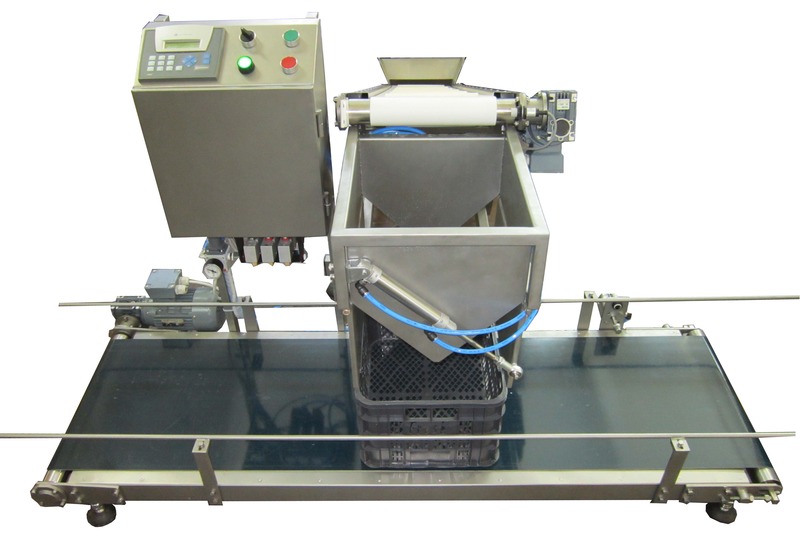 Принцип работы данного укладчика заключается в том, что система отводит наполненные пакеты по наклонному конвейеру, с помощью счетчика-накопителя укладывает их в ящик в заданном количестве и отводит наполненные ящики по горизонтальному конвейеру, подавая следующий пустой ящик. Также данная система предусматривает защиту от нестандартных событий (аварий): если, например, пустой ящик/короб отсутствует на конвейере, то накопитель укладчика просто не откроется и пакеты с продукцией не будут «сыпаться» на конвейерную ленту. Система укладки возобновит работу, как только пустая тара для укладки пакетов будет подана.