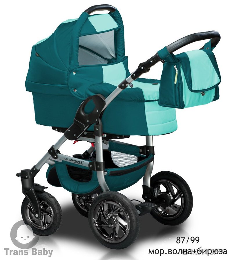 Универсальная коляска 2 в 1 Jumper, Trans baby для малышей от рождения до 3-х лет. Идеально сочетает в себе классические и современные тенденции в функциональности и дизайне. Коляски 2 в 1 Trans baby Jumper комплектуются специально разработанными колесами с учетом бездорожья (пневматические шины).