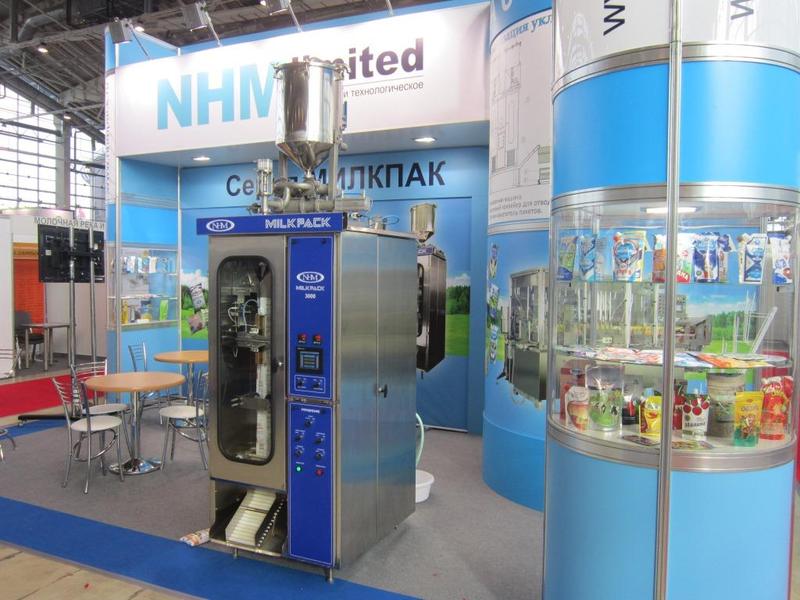 Не стала исключением и компания NHM Limited, которая уже не первый год принимает участие в данной выставке. В этом году на стенде компании проходила демонстрация работы усовершенствованной модели оборудования серии МИЛКПАК-3000 для фасовки жидких и вязких продуктов в полиэтиленовый пакет типа «подушка». В этом году компания не только освежила и немного видоизменила, уже привычный для данной выставки, стенд компании, но и продемонстрировала результаты своей работы по усовершенствованию оборудования серии МИЛКПАК. Одним из таких улучшений стало применение в машине постоянного нагрева сваривательных элементов для запайки швов пакета, что сделало не нужным применения воды в качестве охладителя и привело к улучшению швов пакета. Также был представлен усовершенствованный дозатор, который стал производительней по сравнению с предыдущим вариантом и более удобен при мойки машины.