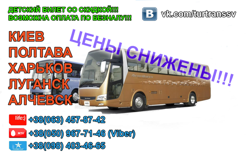 Автобусные перевозки Киев-Полтава-Луганск-Алчевск