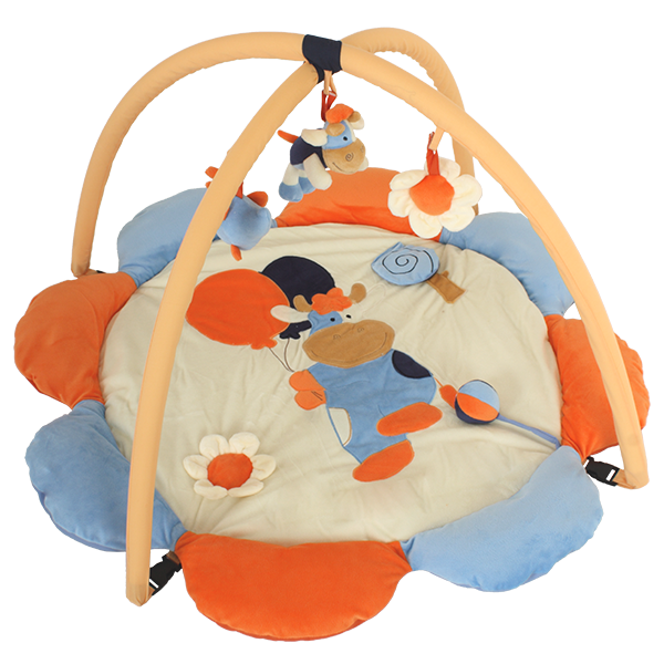 Будьте уверены, что вместе с развивающим ковриком Quatro Milky Ваш малыш будет не только развиваться, но и интересно проводить время. Веселый коврик сделан в оранжево-голубых тонах и своей формой напоминает цветок. Посередине коврик украшает изображением коровки, которая как будто бежит по цветочном поле. Модель оборудована игровыми дугами, к которым прикреплены погремушки в виде цветочков и буренок. Quatro Milky сделан очень качественно и соответствует международным стандартам.