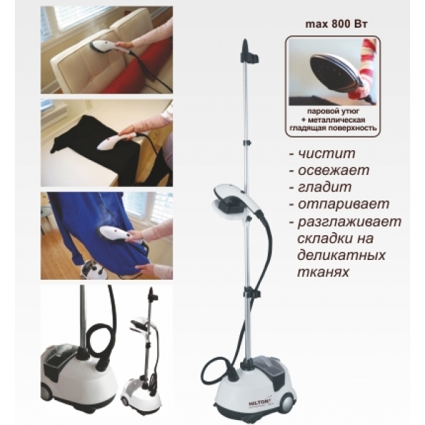 Вертикальный паровой утюг 2 в 1 HILTON HGS 2865 и его описание — гладит и отпаривает в 5 раз быстрее, чем обычный утюг, освежает и дезинфицирует вещи силой пара, мобильный и маневренный.