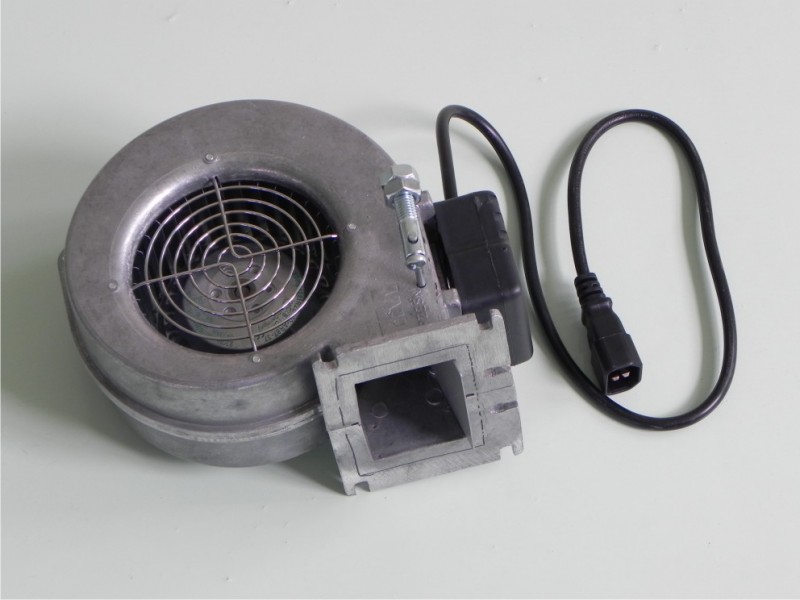 Корпус вентилятора состоит из двух алюминиевых частей, в которых вмонтирован электродвигатель с наружной крыльчаткой. Входное отверстие закрыто предохранительной сеткой. Выпускное отверстие оборудовано прямоугольным фланцем с отверстиями для монтажа на твердотопливном котле.