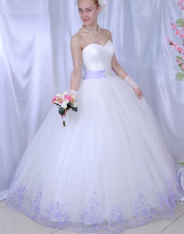 Распродажа! Свадебное платье шампань с сиреневой вышивкой.
