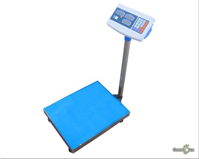 Весы электронные, товарные, платформенные до 150 кг. Весы на один датчик, страна производитель – Китай. Размер поверхности грузо приёмной платформы 40/50 см. Платформа изготовлена с стального профиля, ёё рабочая поверхность с пищевой нержавейки. Платформа имеет регулируемые по высоте ножки. Табло весов пластиковое, имеет три жидко кристаллических экрана индикации с зелёной подсветкой. Тип крепления табло к платформе – стойка. Весы могут использоваться без крепления к платформе. Весы работают от сети 220 В. И встроенного аккумулятора, время бесперебойной работы до 3-х дней.