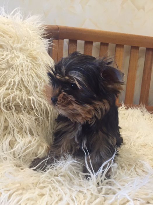 Щеночки Йорка от клубных родителей Вес взрослых собак 2000, 2400.Документы КСУ и международный вет паспорт Сделана прививка нобивак . Вес на сегодня 4 августа 950 грамм Кушает самостоятельно.