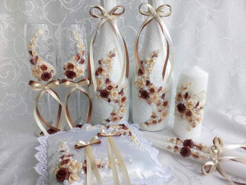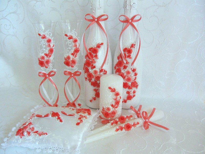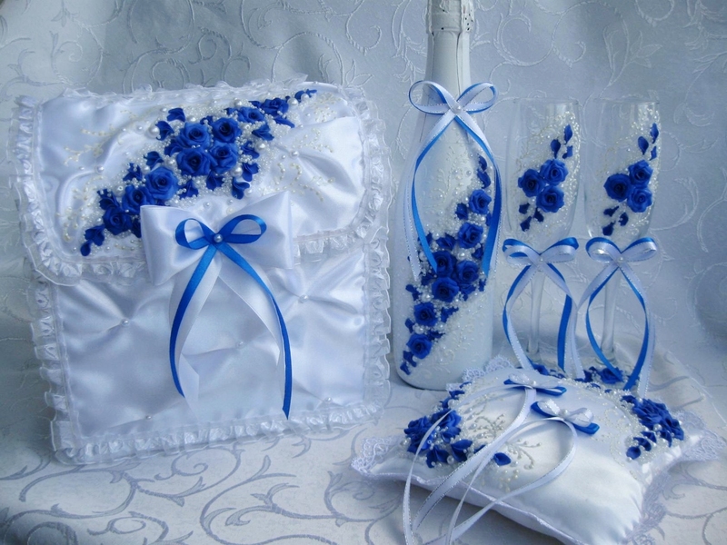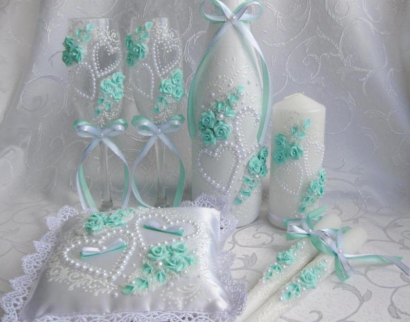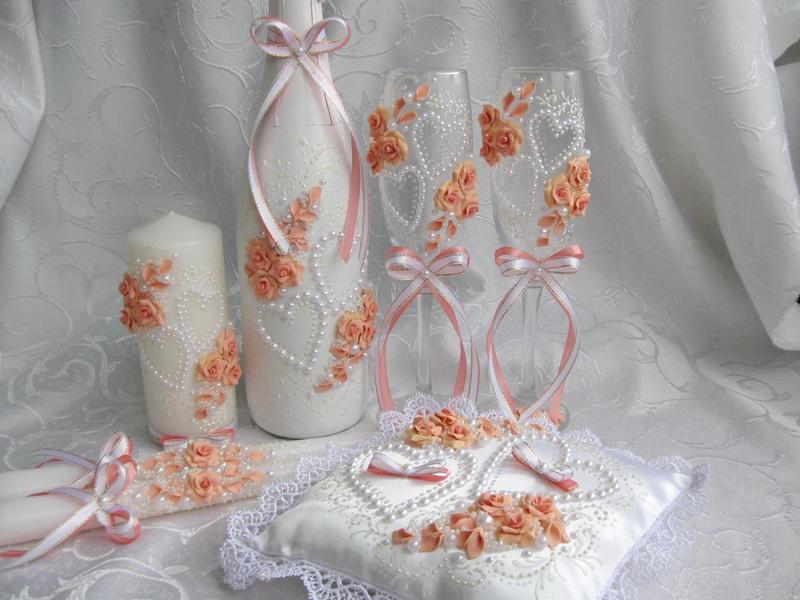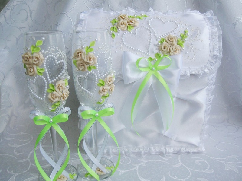 Аксессуары для свадьбы: бокалы, шампанское, подушки, казна, свечи