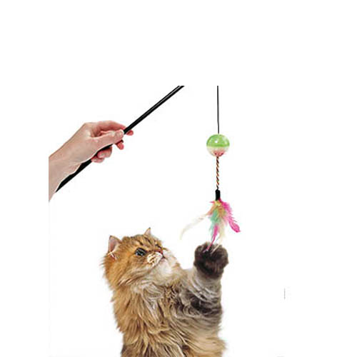 Игрушка украшена цветными перышками, которые пробуждают охотничий инстинкт кошки.