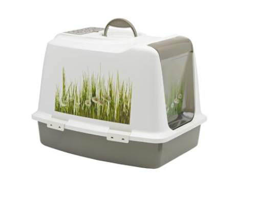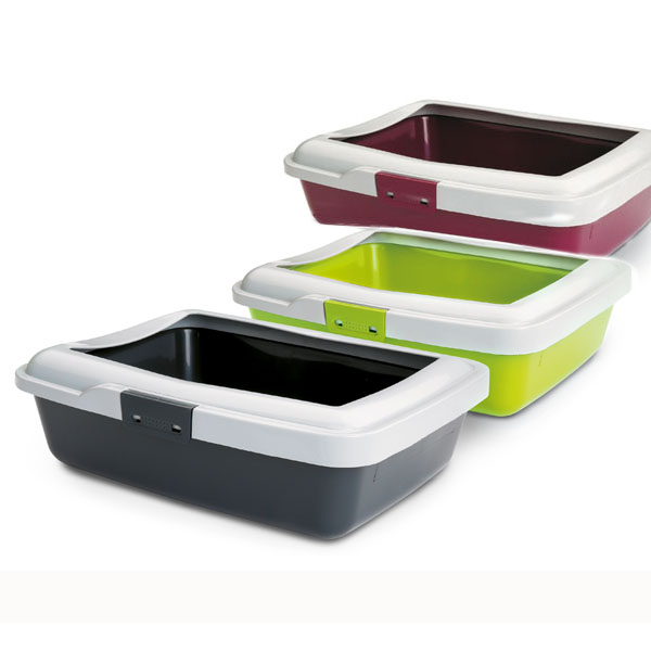 Туалет для кошек из высококачественного полированного пластика, не впитывает неприятные запахи, легко моется. Широкий бортик препятствует рассыпанию наполнителя, с двух сторон крепится надежными защелками.