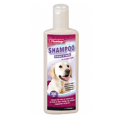 Шампунь для собак Карли-Фламинго с экстрактами трав обладает минимальной степенью обезжиривания и создает защитный слой на коже и шерсти.