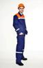 Костюм состоит из куртки и брюк . Комбинация цвета на куртке и брюк - синий и оранжевый . Материал - ткань диагональ( повышенная прочность ткани - плотность 245грм – состав хлопок 100 %