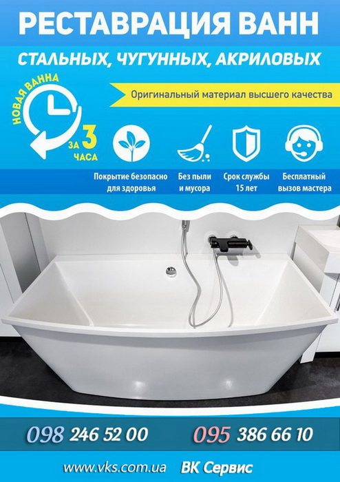 Профессиональная реставрация ванн на дому, без демонтажа. Ванная станет как новая всего за 3 часа.