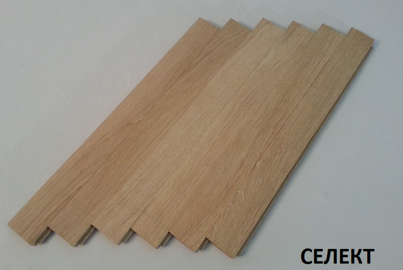 Селект – паркет высшего класса без резких перепадов цвета, сучки и неровности не допускаются.