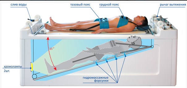 Гидромассажная ванна Акватракцион - это действенное приспособление для вытяжения позвоночника. Подводный гидромассаж обеспечивает расслабление мышц и увеличивает положительный эффект от вытяжения. Аппарат применяют как для шейного, так и пояснично-кресцового отделов.