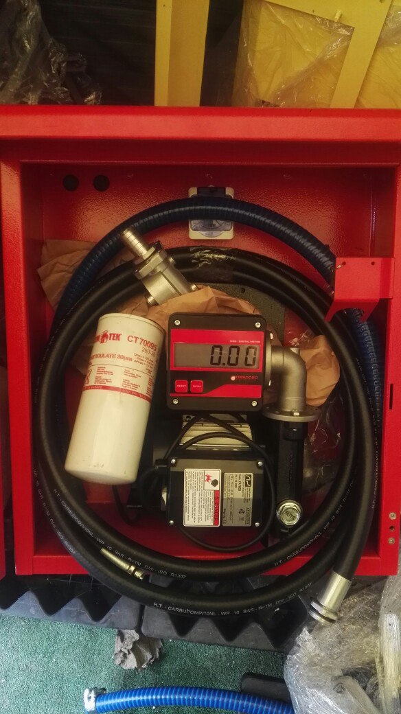 Стационарная топливораздаточная колонка (ТРК) для дизеля со счетчиком, исполнение в закрывающимся мет. шкафу. Данная колонка идеальна для условий, где есть напряжение 220В. ТРК можно смонтировать на стену, резервуар или на другую панель. Обязательной сертификации не требует! Насос имеет установленный фильтр грубой, а также обводной клапан, который пропускает дизельное топливо во время работы при закрытом топливном пистолете.