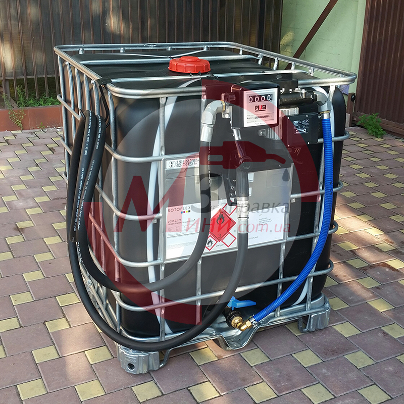 Топливозаправочный модуль на базе защищенного от влияния УФ еврокуба(1000 л), с поддоном из металла для удобной перевозки и заземлением.