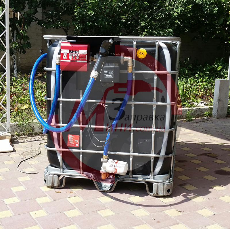 Топливозаправочный модуль на базе защищенного от влияния УФ еврокуба(1000 л), с поддоном из металла для удобной перевозки и заземлением.