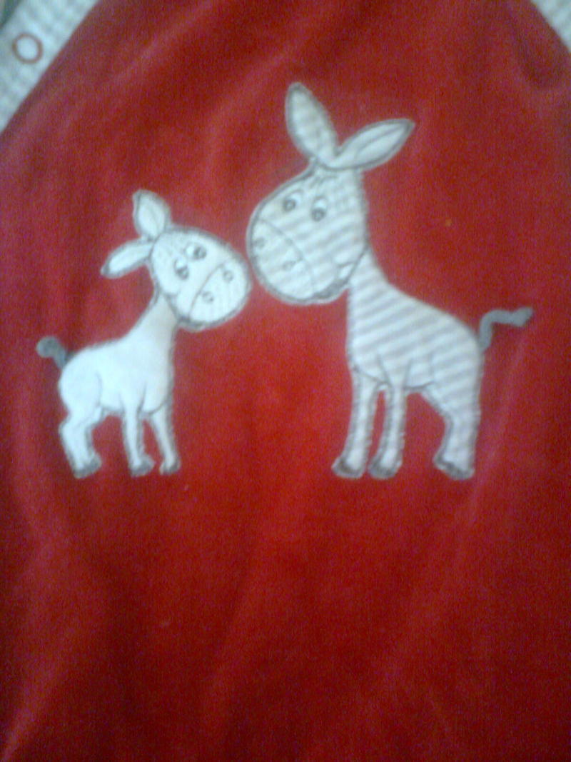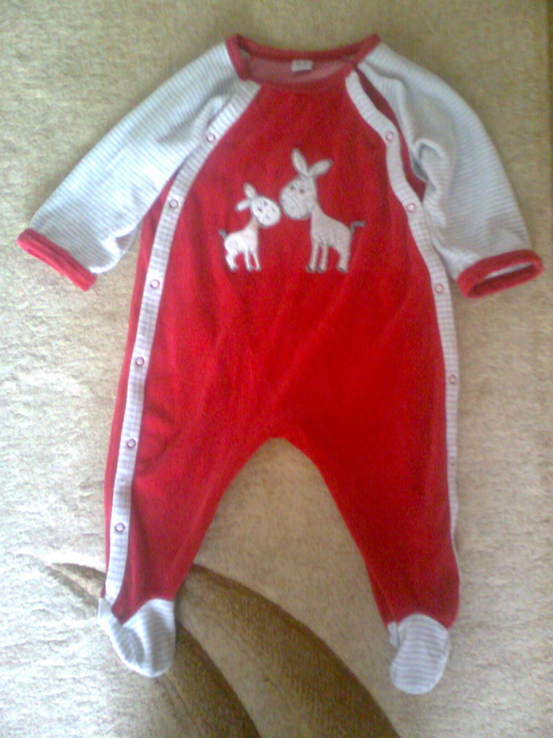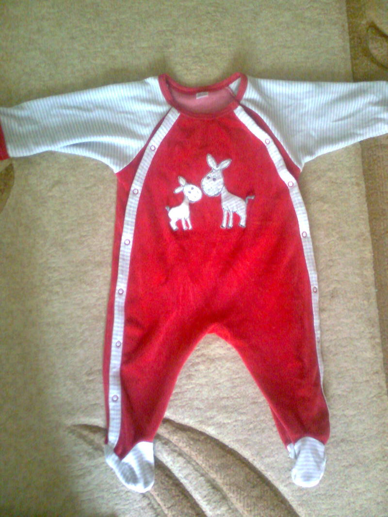 Продам бархатный комбинезончик с вышивкой First smile размер 74-80 цвет-красный с серым.
