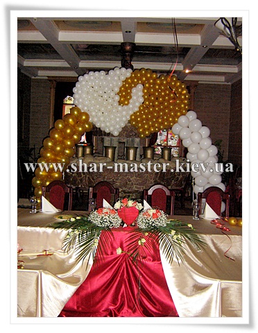 — свадеб (сердца, лебеди, кольца, гелиевые букеты, стойки, арки, сферы из воздушных шаров, фигуры жениха и невесты из шариков);