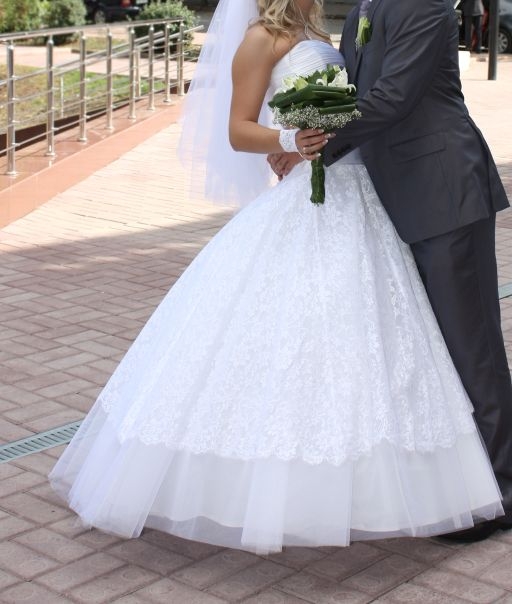 Продам шикарное свадебное платье PAPILIO "Горный хрусталь" 42-44 размер (рост 165-170 см на каблуках ), купленное в салоне «Ассоль» в Киеве. Состоит из корсета и пышной юбки. Корсет выполнен из атласа. Открытые плечи. Корсет на шнуровке (атласная лента). Пышный низ - верхний слой из великолепного французского кружева, нижние слои - кринолин.