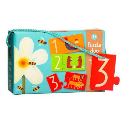 10 карточек, каждая из которых разделена на 2 части. На одной части изображена цифра (от1 до 10), на другой- животные (количество соответствует цифре на первой части). Сначала вместе с ребенком изучите карточки не разделяя их, обратите его внимание, что количество животных соответствует цифре на карточке. Если Вы уверены, что ребенок хорошо знает цифры и сможет посчитать от 1 до 10, приступайте ко второму этапу игры. Разделите карточки на две части (у вас получится 20 элементов)- цифры и животные отдельно, перемешайте их. Попросите ребенка рассмотреть внимательно элементы пазла, посчитать животных, и собрать правильно карточки. Цвет карточек также подскажет ребенку, как сделать правильный выбор (карточки могут быть 4 цветов- желтые, зеленые, красные, голубые).