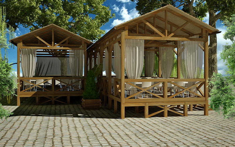 Летние площадка, терраса для кафе и ресторанов из дерева