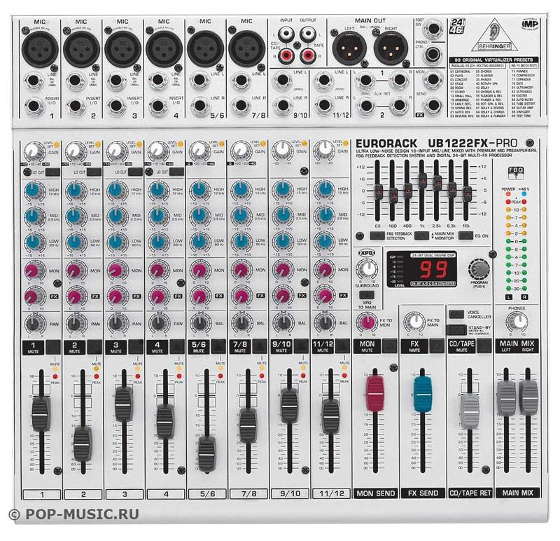 Микшерный пульт Behringer EURORACK, UB 1222 FX-PRO. 6 микрофонных входов + 4 стерео, графический 7-полосный эквалайзер, встроенный процессор эффектов.