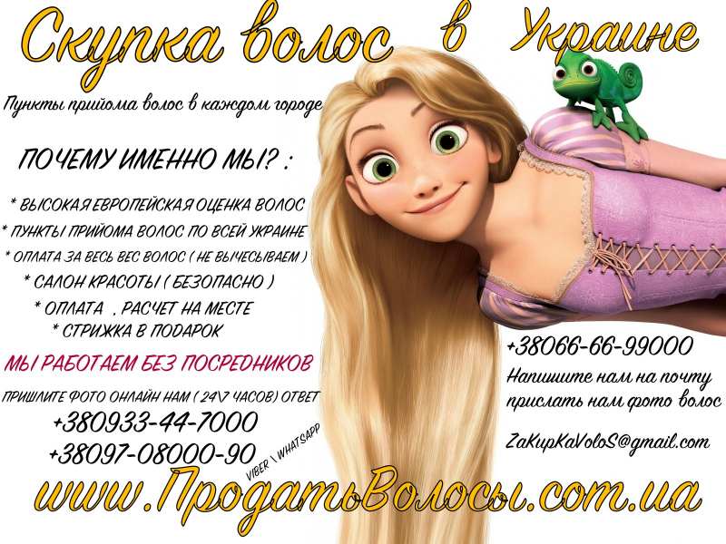 Наша компания принимает по высокой цене натуральные и ухоженные волосы (как мужские, так и женские). Главным пунктом отличной цены является длина не менее 40см. Если у вас есть желание заработать, и вы уже давненько подумываете о смене образа, то мы с вами быстро решим все эти вопросы. Мы предлагаем самую высокую цену на волосы в Украине – от 20000 грн. - 1кг минимальной длины или от 2000 грн. - 100 грамм.