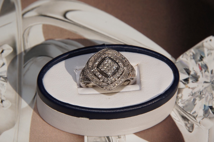 Новое кольцо из белого золота с бриллиантами. 76 бриллиантов круглой огранки (57 граней) общим весом 0, 5 карат.