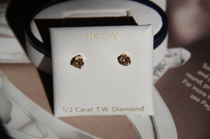 Новые серьги с бриллиантами цвета шампанского ( tw 0, 5 ct)