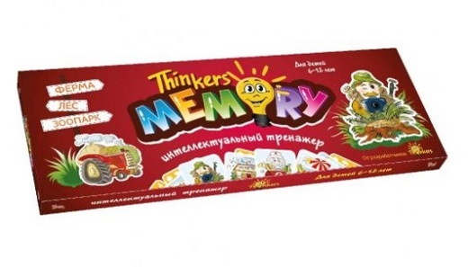 «Thinkers Memory» сприяє розвитку пам'яті, тренує уважність і посидючість, візуалізацію та зорову пам'ять. Підходить не тільки для дітей, але й для дорослих, і особливо для людей похилого віку для профілактики деяких захворювань мозку. Випуск представляє собою набір пар однакових карточок (36 пар) із зображенням тварин, які мешкають в лісі, або на фермі, або в зоопарку, і декількох спец. карточок. Дана гра представлена в двох вікових категоріях: 4-6 років і 6-12 років, що відрізняються між собою рівнем складності. Ціна - 220 грн.