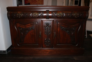 деревяный комод в стиле периода Сецесии, основное украшение-резьба маки, отреставрирован, сохранены все металические детали