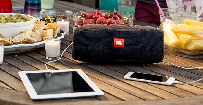 JBL Xtreme – это полнофункциональный портативный Bluetooth-динамик, который легко воспроизводит потрясающе мощный стереозвук через четыре активных преобразователя и два видимых излучателя низких частот JBL. Мощное звучание и портативность Динамик оснащен емким перезаряжаемый литий-ионный аккумулятором на 10 000 мА*ч, обеспечивающим до 15 часов автономной работы, и двойным USB-выходом для зарядки, поэтому ваша музыка будет звучать, а устройства – работать так долго, сколько вам нужно. JBL Xtreme подарит вам нужные эмоции там, где требуется – как в помещении, так и на улице, на вечеринке у бассейна или на шашлыке на лужайке, – а симпатичная тканевая обивка черного, синего или красного цвета эффективно защитит динамик от брызг. Кроме того, продукт оснащен спикерфоном с функциями шумоподавления и эхокомпенсации для четкой конференц-связи, а функция JBL Connect позволяет объединять в беспроводную сеть несколько колонок, поддерживающих эту функцию, и таким образом усиливать акустические ощущения от прослушивания. Поддержка Bluetooth Поддержка технологии Bluetooth позволяет передавать потоковую музыку в высоком качестве с мобильных устройств. Источником звука может быть мобильный телефон, планшетное устройство или ноутбук — эта модель сможет с ним работать. Защита от брызг Теперь вы можете не беспокоится о случайных брызгах или внезапном дожде. Аккумулятор Аккумулятор легко подзаряжается, что позволяет не думать о батарейках и экономит средства. JBL Connect Постройте свою собственную аудио систему, объединяя динамики, поддерживающие JBL Connect, в единую сеть для создания еще более мощного звучания.