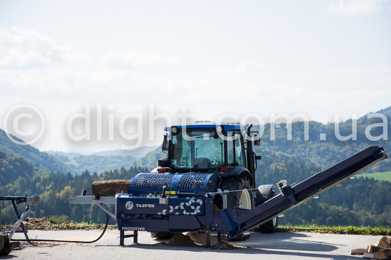 В транспортном положении дровокол легко перевозится с места на место при помощи стандартной трёхточечной навески трактора.