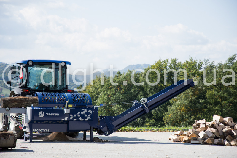 Ножи для раскола подбираются под диаметр бревна и их легко можно менять. Ножи автоматически плавно поднимаются или опускаются. Готовые дрова выгружаются из станка при помощи ленточного разгрузочного конвейера длиной 3 метра. Скорость движения конвейера задаётся оператором.