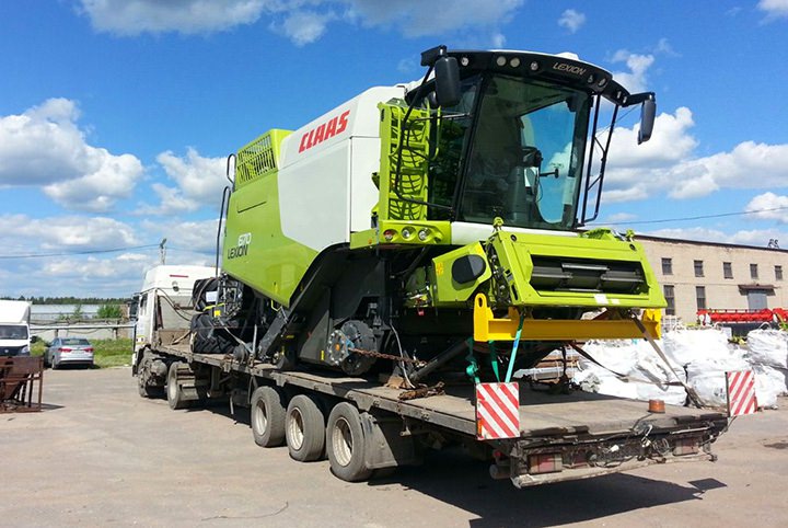 Все мы прекрасно понимаем что доехать своим ходом комбайну на дальние ростояния, не говоря уже в другую страну, практически невозможно. Для выполнения этих задач привлекаются тралы или платформ.