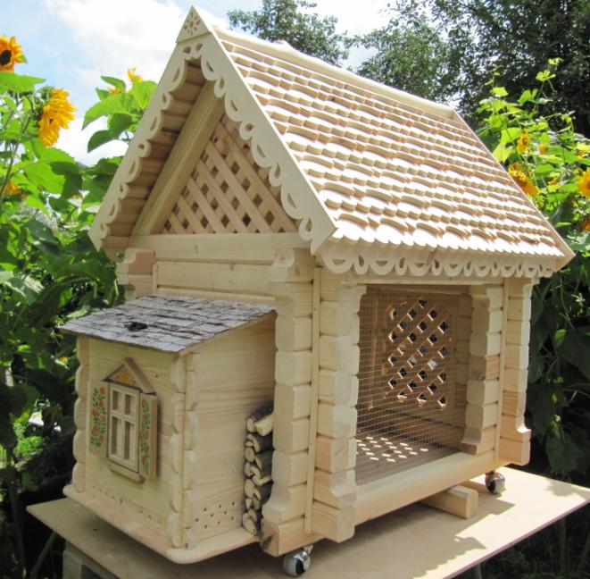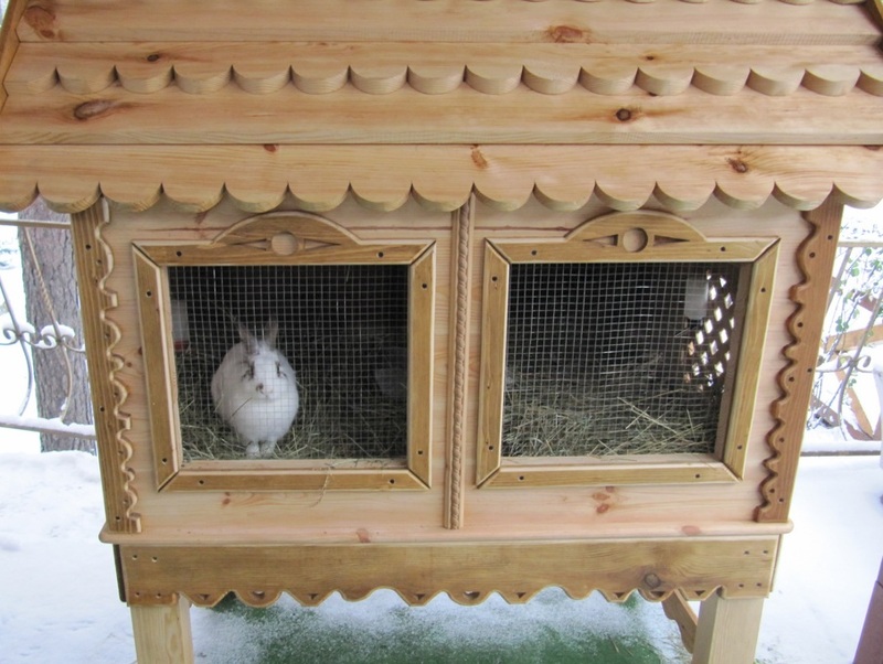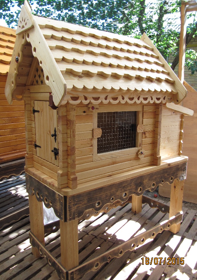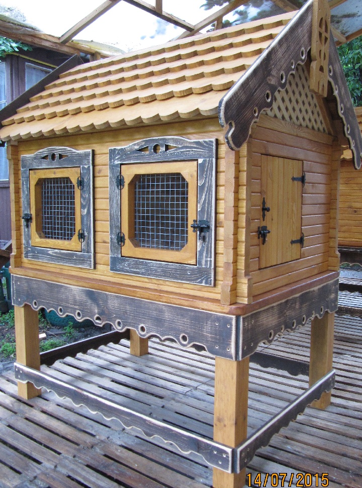 Клетка выполнена в виде сказочного дворца. Внутри есть маленький домик, больше похож на норку в дупле, что позволит кролику сразу освоиться и чувствовать себя в безопасности. Клетка и домик выполнен только из дерева