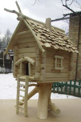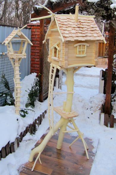 Кормушка - дупло выполнено в виде сказочного домика. Домик изготовлен из натурального дерева. Предназначен для кормления белочки и как основное дупло