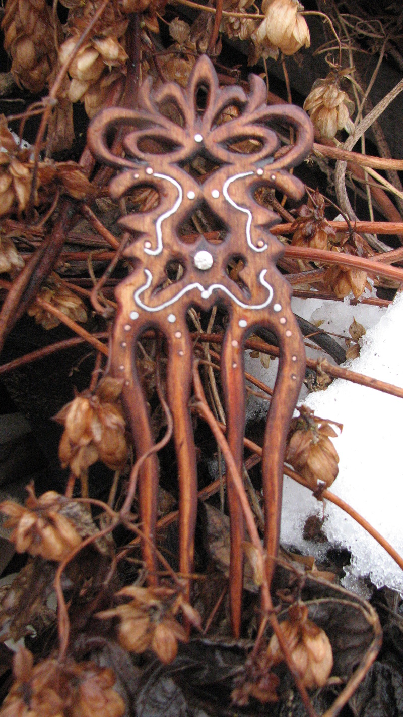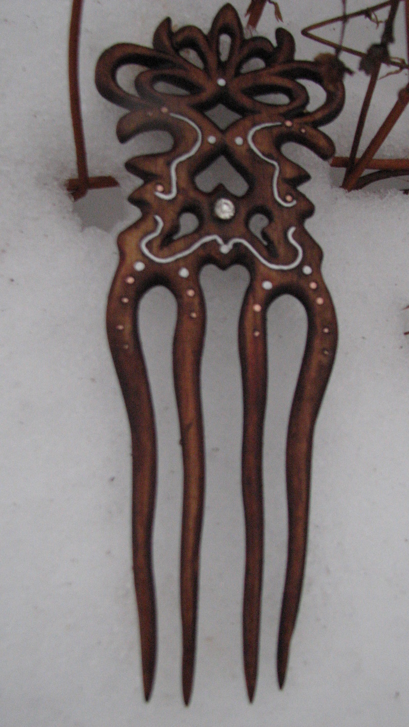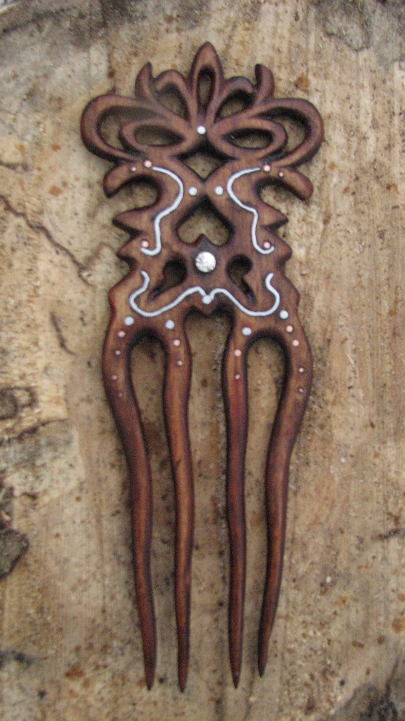 Авторский гребень "Созвездие любви" вырезан из красн дерева и инкрустирован.