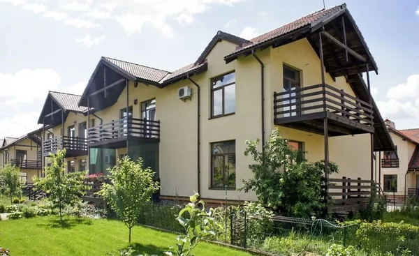 Без комиссии современный таунхаус в построенном и заселенном коттеджном городке комфорт класса “Садок Вишневий”, расположенном между селами Крюковщина и Гатное в 5км от Киева по Одесской трассе.