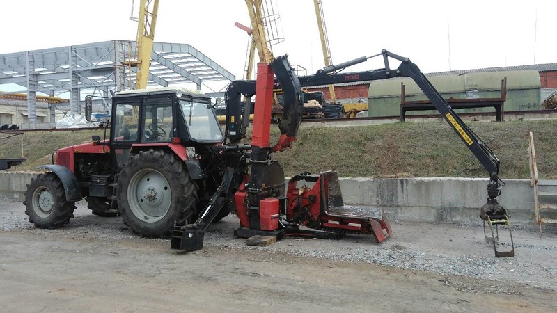 Комплекс для изготовления топливной щепы из отходов древесины, веток, стволов непосредственно на участках главных и санитарных рубок, пилорамах и т.д. и ее транспортировки и перегрузки в автотранспорт пользователя. Основным средством для изготовления щепы в данном комплексе является высокоэффективный финский измельчитель древесины Farmi ch27 acc, который перерабатывает в однородную качественную щепу разный материал диаметром до 270 мм. Измельчитель приводится в действие от трактора Беларус 1221.2 и загружается древесиной с помощью манипулятора Palms 530. Готовая щепа загружается в мешки типа биг-бег и вывозится с участка для дальнейшего перегрузки.