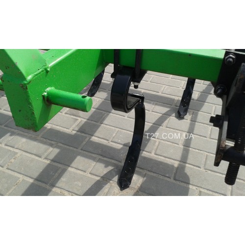 Усиленная конструкция выдерживает большие нагрузки благодаря сплошной раме, отличается простотой в эксплуатации и легко настраивается на необходимые параметры работы. Девять пружинных стоек (зубьев) культиватора расположены в два ряда на расстоянии 185 мм друг от друга (с возможностью регулировки) и крепятся к раме при помощи стремянок. Рабочие элементы стоек (легко заменяемые рыхлительные долота) выполнены из прочной стали, характеризуются стойкостью к износу и повреждениям. Для крепления и правильной регулировки центрального винта предусмотрены 2 отверстия.