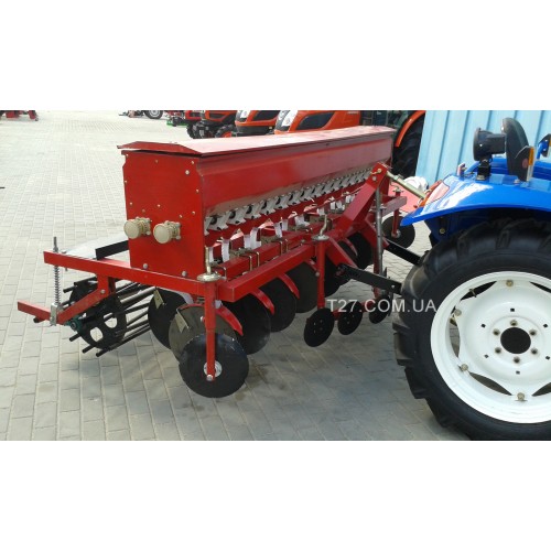 Главная конструктивная особенность орудия - наличие бункера для удобрений, что вносятся в грунт одновременно с семенами, но на уровень ниже, для благоприятного развития корневой системы и роста. Опорные колеса нарезают борозду регулируемой глубины. Равномерность посева обеспечивается специальными одноуровневыми шлангами, которыми оснащена сеялка.