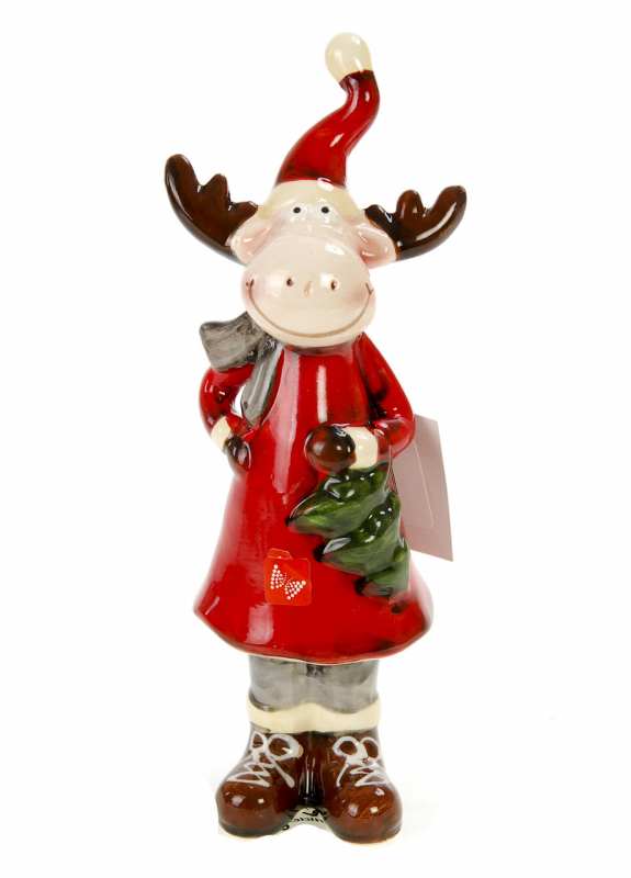 M19-470019, Новогодняя статуэтка " Лось с елкой ", красный-коричневый
