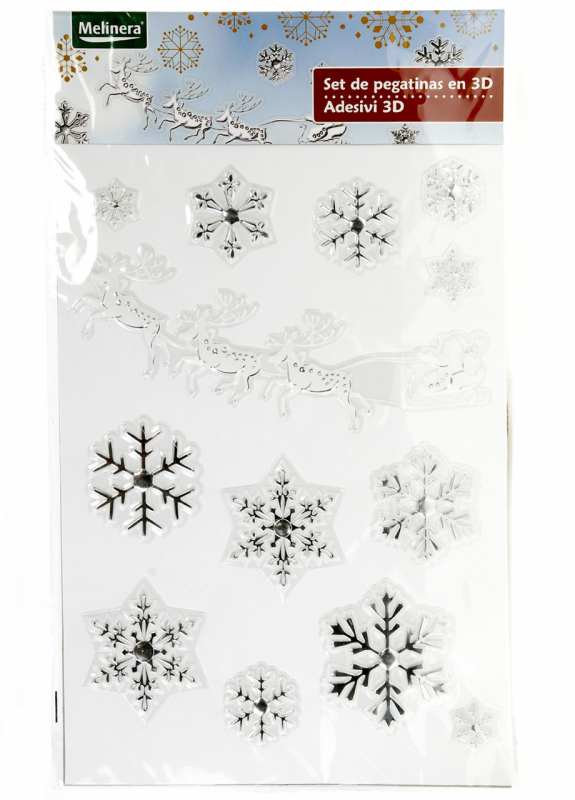 M19-570007, Новогодний набор наклеек 3D "Снежинки", универсальное, сер